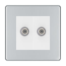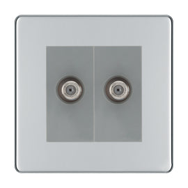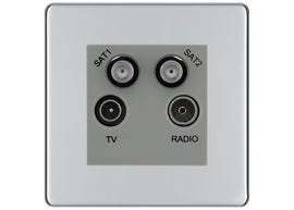 BG Screwless Polished Chrome TV/FM/2x SAT Quadplex Socket – Grey Insert