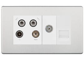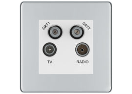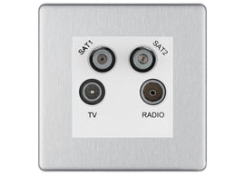 BG Screwless Brushed Steel TV/FM/2x SAT Quadplex Socket – White Insert