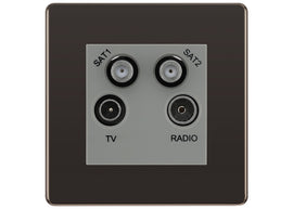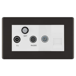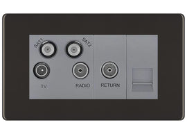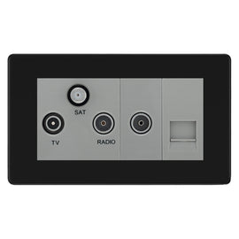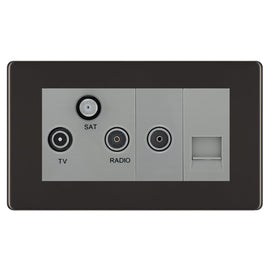 BG Screwless Black Nickel TV/FM/SAT + Return & 1 Gang Tel - Screened Triplex Socket FBN68G