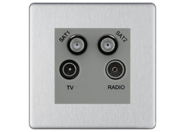 BG Screwless Brushed Steel TV/FM/2x SAT Quadplex Socket – Grey Insert