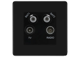 BG Screwless Matt Black TV/FM/2x SAT Quadplex Socket – Black Insert