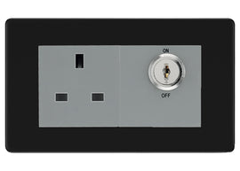 BG Screwless Matt Black 13A Double Pole Key Controlled Socket – Grey Inserts