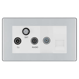 BG Screwless Polished Chrome TV/FM/SAT + Return & 1 Gang Tel - Screened Triplex Socket FPC68B