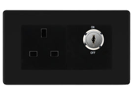 BG Screwless Matt Black 13A Double Pole Key Controlled Socket – Black Inserts