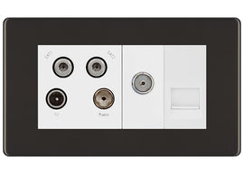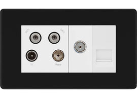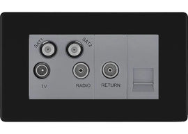 BG Screwless Matt Black Quadplex Combination TV Socket FFB69G