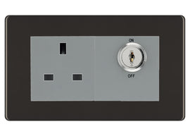 BG Screwless Black Nickel 13A Double Pole Key Controlled Socket – Grey Inserts