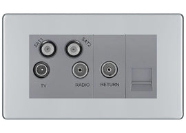 BG Screwless Brushed Steel Quadplex Combination TV Socket FBS69W