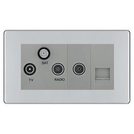 BG Screwless Polished Chrome Quadplex Combination TV Socket FPC69B