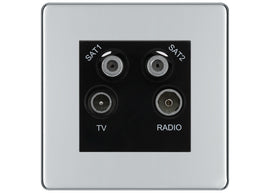 BG Screwless Polished Chrome TV/FM/2x SAT Quadplex Socket – Black Insert