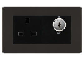 BG Screwless Black Nickel 13A Double Pole Key Controlled Socket – Black Inserts