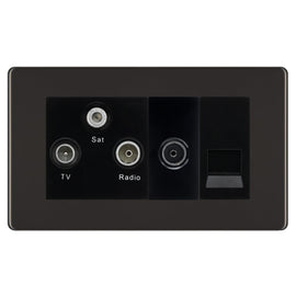 BG Screwless Black Nickel Quadplex Combination TV Socket FBN69G