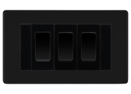 BG Matt Black Screwless 3 Gang 20AX 2-Way Switch Custom Grid - Black Insert