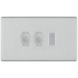 BG Brushed Steel Screwless 2 Gang Switch 1x Trailing Edge LED Dimmer 1x Intermediate Switch