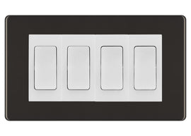BG Black Nickel Screwless 4 Gang Intermediate Light Switch Custom Grid - White Insert