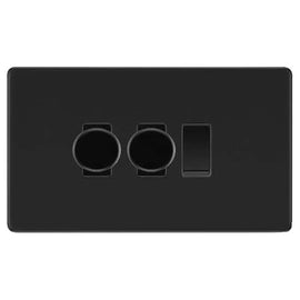 BG Screwless Matt Black 3 Gang Switch 2x Trailing Edge LED Dimmer 1x Intermediate Custom Grid Switch