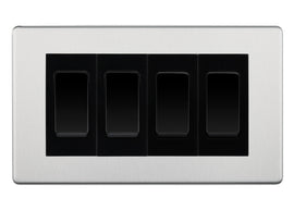 BG Brushed Steel Screwless 4 Gang 20AX 2-Way Switch Custom Grid - Black Insert