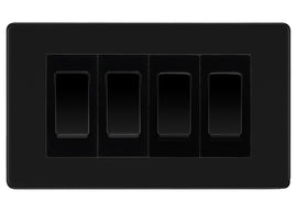 BG Matt Black Screwless 4 Gang 20AX 2-Way Switch Custom Grid - Black Insert