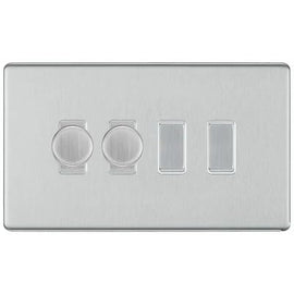 BG Screwless Brushed Steel 4 Gang Switch 2x Trailing Edge LED Dimmer 2x Intermediate Custom Grid Switch