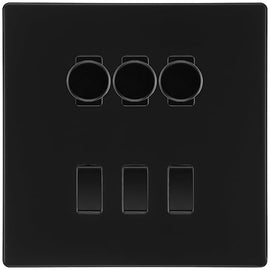 BG Screwless Matt Black 6 Gang Switch 3x Trailing Edge LED Dimmer 3x Intermediate Custom Grid Switch