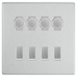 BG Screwless Brushed Steel 8 Gang Switch 4x Trailing Edge LED Dimmer 4x Intermediate Custom Grid Switch