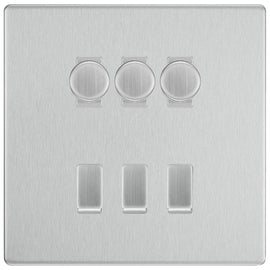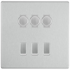 BG Screwless Brushed Steel 6 Gang Switch 3x Trailing Edge LED Dimmer 3x Intermediate Custom Grid Switch