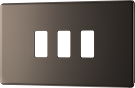 BG Nexus GFBN3 Grid Black Nickel Screwless 3 Gang Front Plate Bg Nexus Screwless Finish: Black Nickel Requires 1X Gfr34Fp Grid Frame (Sold Separately) Matches The Bg Flat Plate Screwless Black Nickel Range British Gener...