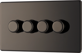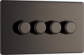 Nexus Flatplate Screwless Black Nickel 4 Gang 200W 2 Way Trailing-Edge Push Dimmer Switch About Product: Screwless front secure & easy "clip on/off" plate Sleek flat profile Push On/Off rotary dimmer switch Minimum b...