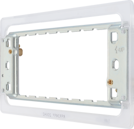 6 and 8 Gang Grid Frame for Nexus Screwless Flat-Plate Front Plates About Product: 6 & 8 Gang grid frame Supplied with fixing screws for mounting Earth terminal(s) fitted as standard Suitable for use with Grid Screwl...