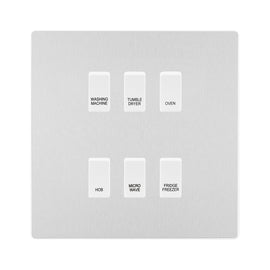 BG Evolve Brushed Steel Custom Appliance Grid Switch 6 Gang Screwless E V O L V E A new generation of decorative modern wiring devices, available in the latest colours and finishes. The range benefits aesthetically from havi...
