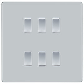 BG Polished Chrome Screwless 6 Gang Intermediate Light Switch Custom Grid Switch with Back Box Included Please note that this switch will come in a grid format. You will be sent the following parts all supplied by BG; 1x 6...