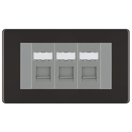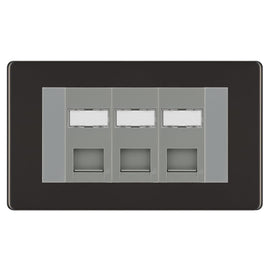 BG Screwless Black Nickel 3 Gang RJ45 CAT6 Data Socket Grey Inserts