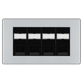 BG Screwless Polished Chrome 4 Gang RJ45 Cat5e Data Socket Black Inserts