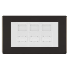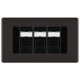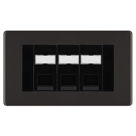 BG Screwless Black Nickel 3 Gang RJ45 Cat5e Data Socket Black Inserts