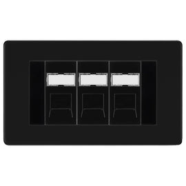 BG Screwless Matt Black 3 Gang RJ45 Cat6 Data Socket Outlet Black Inserts