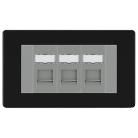 BG Screwless Matt Black 3 Gang RJ45 CAT6 Data Socket Grey Inserts