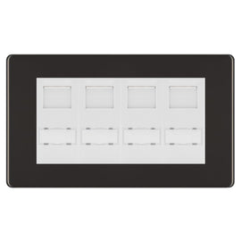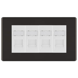 BG Screwless Black Nickel 4 Gang RJ45 Cat6 Data Socket White Inserts