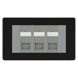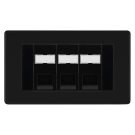 BG Screwless Matt Black 3 Gang RJ45 Cat5e Data Socket Black Inserts