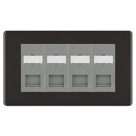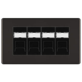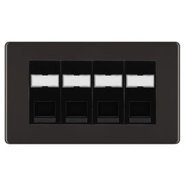 BG Screwless Black Nickel 4 Gang RJ45 Cat5e Data Socket Black Inserts