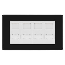BG Screwless Matt Black 4 Gang RJ45 Cat6 Data Socket White Inserts