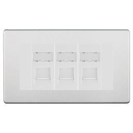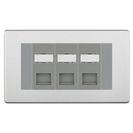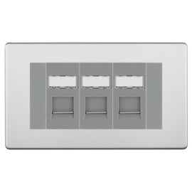 BG Screwless Brushed Steel 3 Gang RJ45 CAT6 Data Socket Grey Inserts