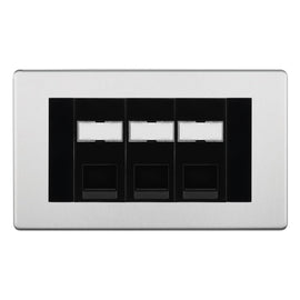 BG Screwless Brushed Steel 3 Gang RJ45 Cat5e Data Socket Black Inserts