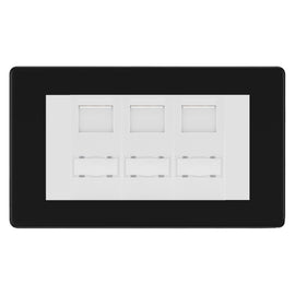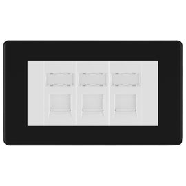 BG Screwless Matt Black 3 Gang RJ45 CAT6 Data Socket White Inserts