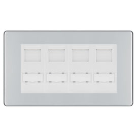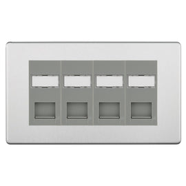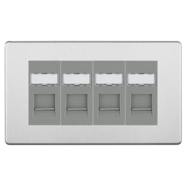 BG Screwless Brushed Steel 4 Gang RJ45 CAT6 Data Socket Grey Inserts
