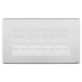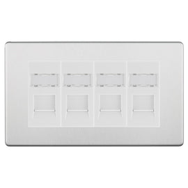 BG Screwless Brushed Steel 4 Gang RJ45 Cat6 Data Socket Outlet White Inserts