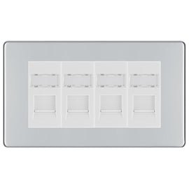 BG Screwless Brushed Steel 4 Gang RJ45 Cat6 Data Socket Outlet Grey Inserts