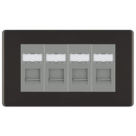 BG Screwless Black Nickel 4 Gang RJ45 CAT6 Data Socket Grey Inserts
