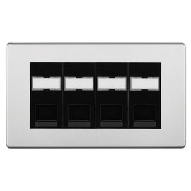 BG Screwless Brushed Steel 4 Gang RJ45 Cat5e Data Socket Black Inserts