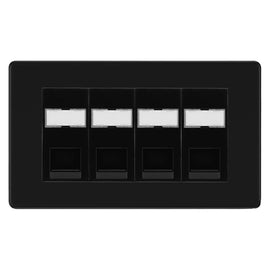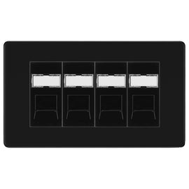 BG Screwless Matt Black 4 Gang RJ45 Cat6 Data Socket Outlet Black Inserts