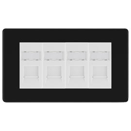 BG Screwless Matt Black 4 Gang RJ45 Cat6 Data Socket Outlet White Inserts