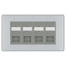 BG Screwless Polished Chrome 4 Gang RJ45 CAT6 Data Socket Grey Inserts
